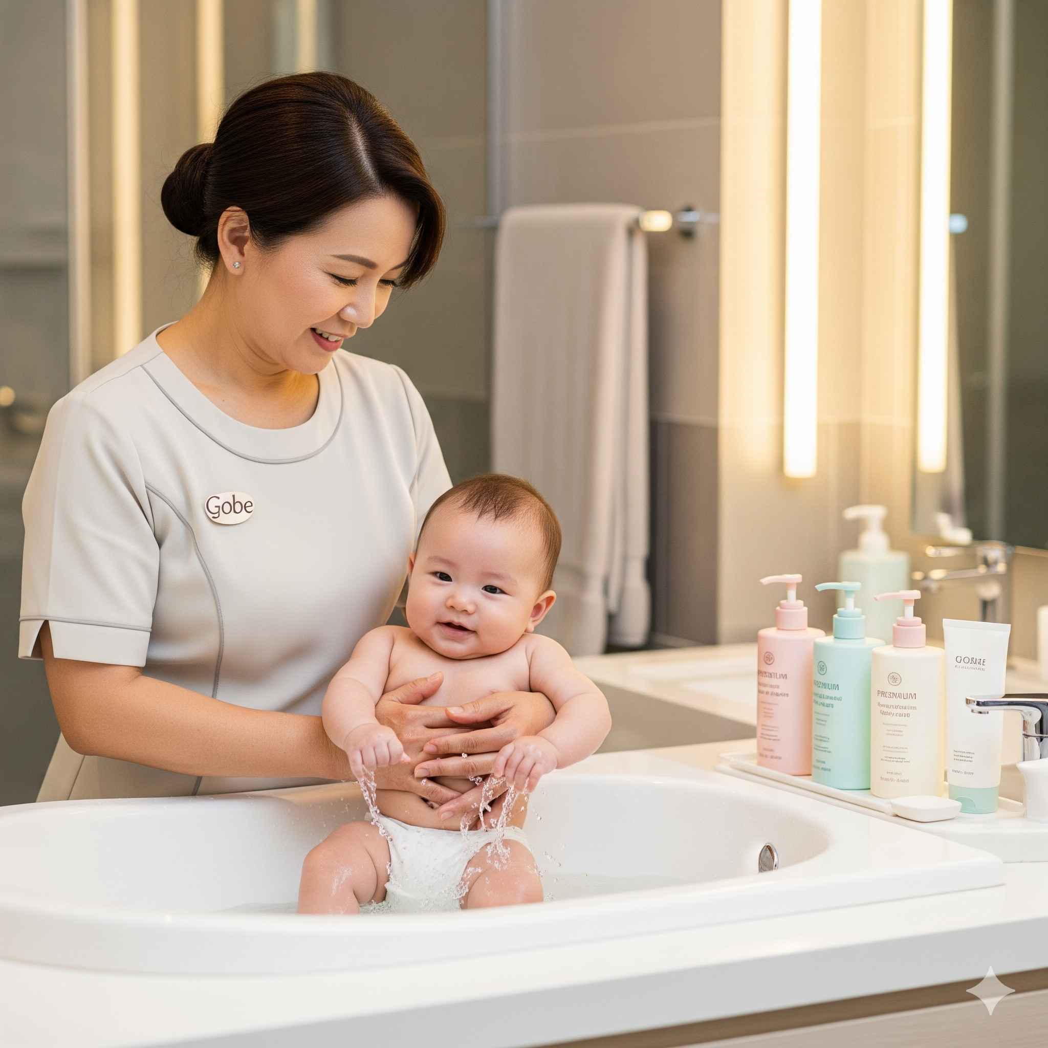 - Tắm bé và vệ sinh rốn: Nhân viên có kinh nghiệm tắm bé đúng cách, vệ sinh rốn cẩn thận để tránh nhiễm trùng.