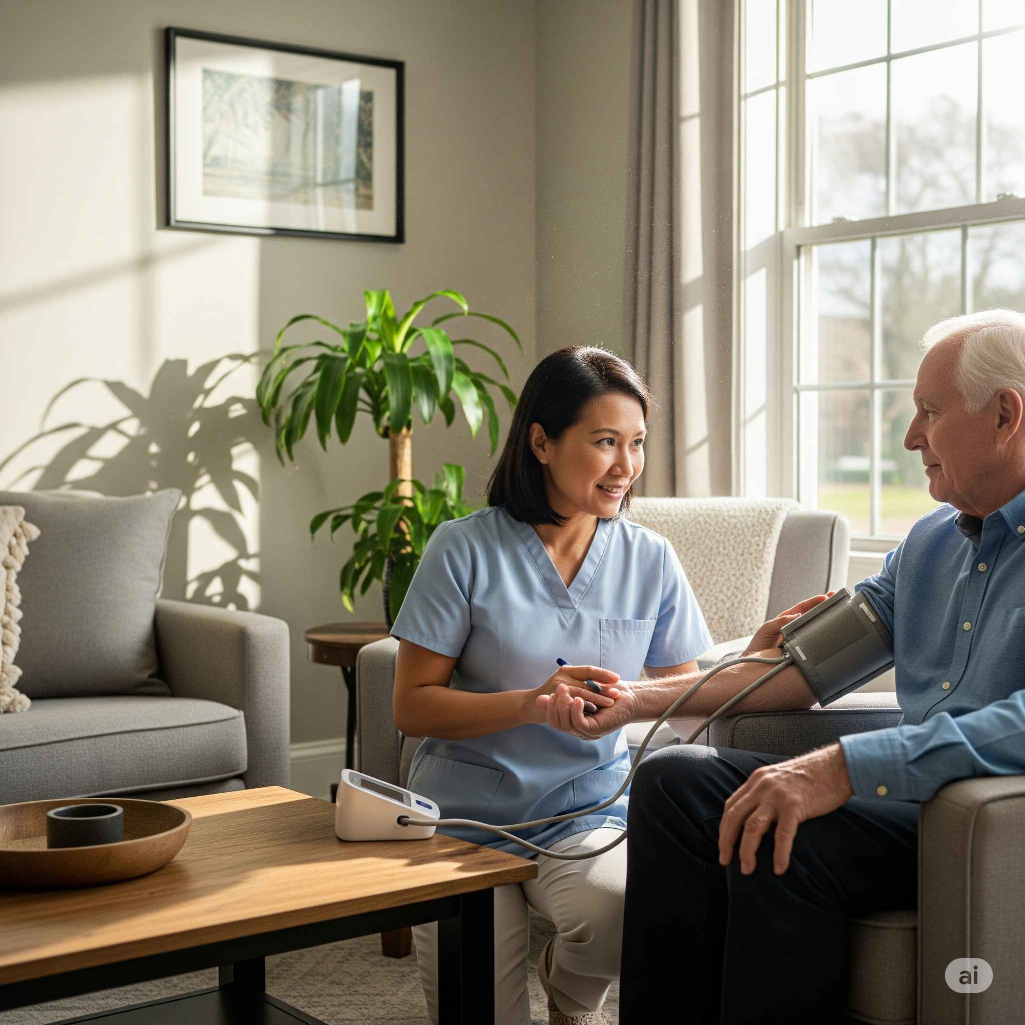 Chúng tôi cung cấp dịch vụ tư vấn tận nhà, đánh giá nhu cầu chăm sóc và xây dựng kế hoạch chăm sóc cá nhân hóa cho người thân của bạn. Đội ngũ chuyên viên tư vấn giàu kinh nghiệm của chúng tôi sẽ giải đáp mọi thắc mắc và hỗ trợ bạn trong suốt quá trình sử dụng dịch vụ.
