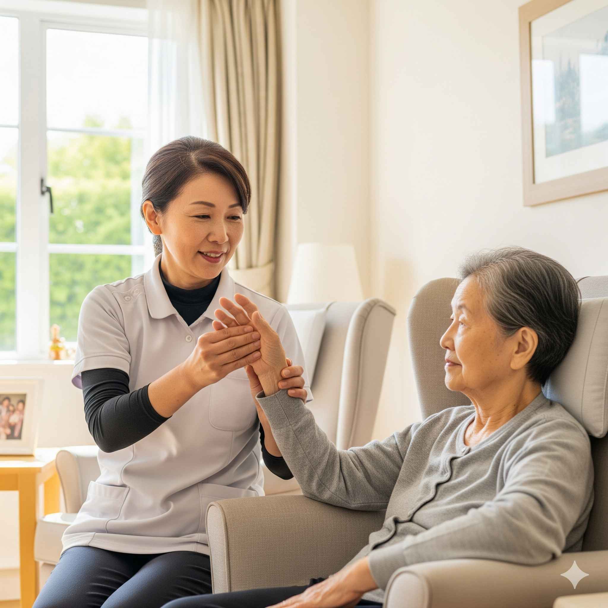 - Chăm sóc y tế cơ bản: Hỗ trợ uống thuốc đúng giờ, theo dõi các chỉ số sức khỏe, thay băng, vệ sinh vết thương (nếu được phép), và hỗ trợ các hoạt động phục hồi chức năng.