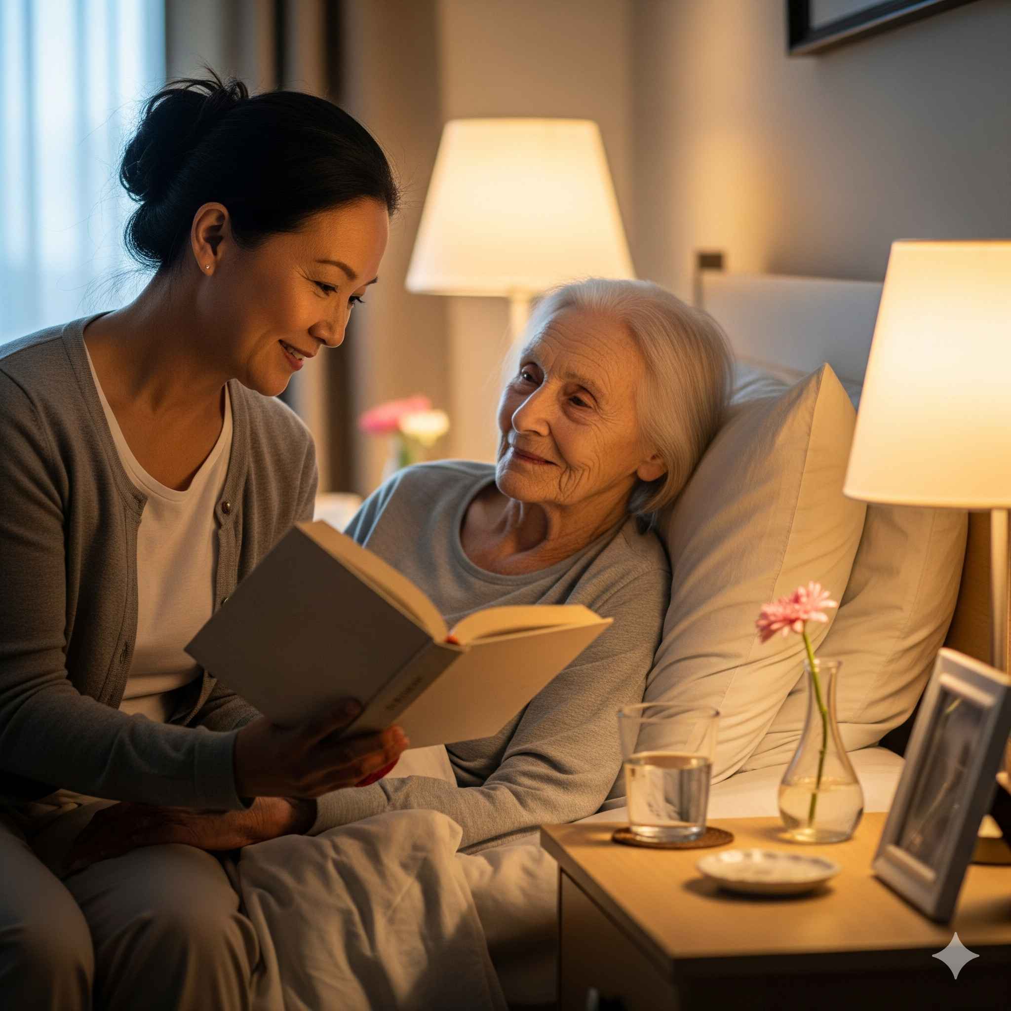 - Chăm sóc toàn thời gian tại bệnh viện: Người chăm sóc thay thế hoàn toàn vai trò của người nhà, túc trực 24/7 bên người bệnh.