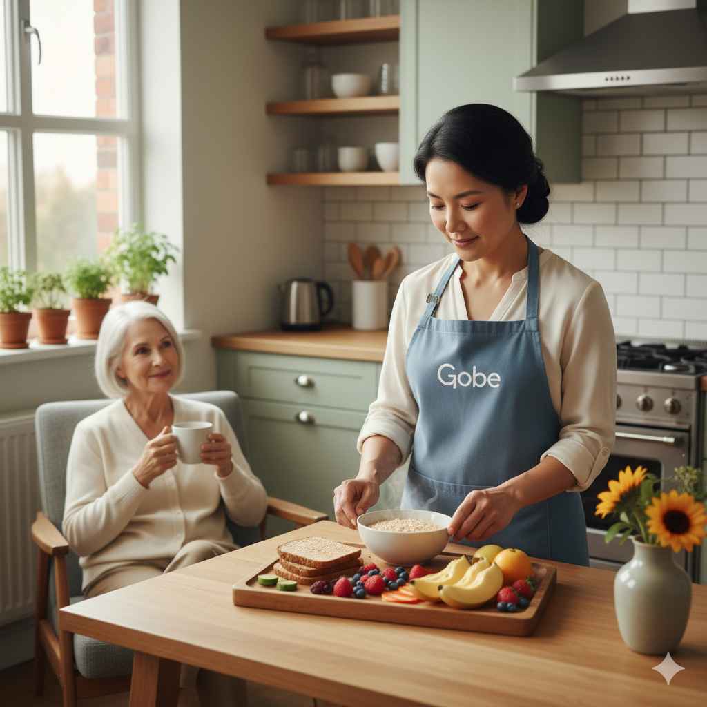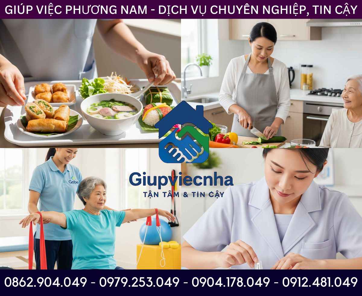- ✅ Chuẩn bị bữa ăn theo chế độ dinh dưỡng: Nấu các món ăn phù hợp với tình trạng sức khỏe, dễ tiêu hóa, đủ dinh dưỡng.