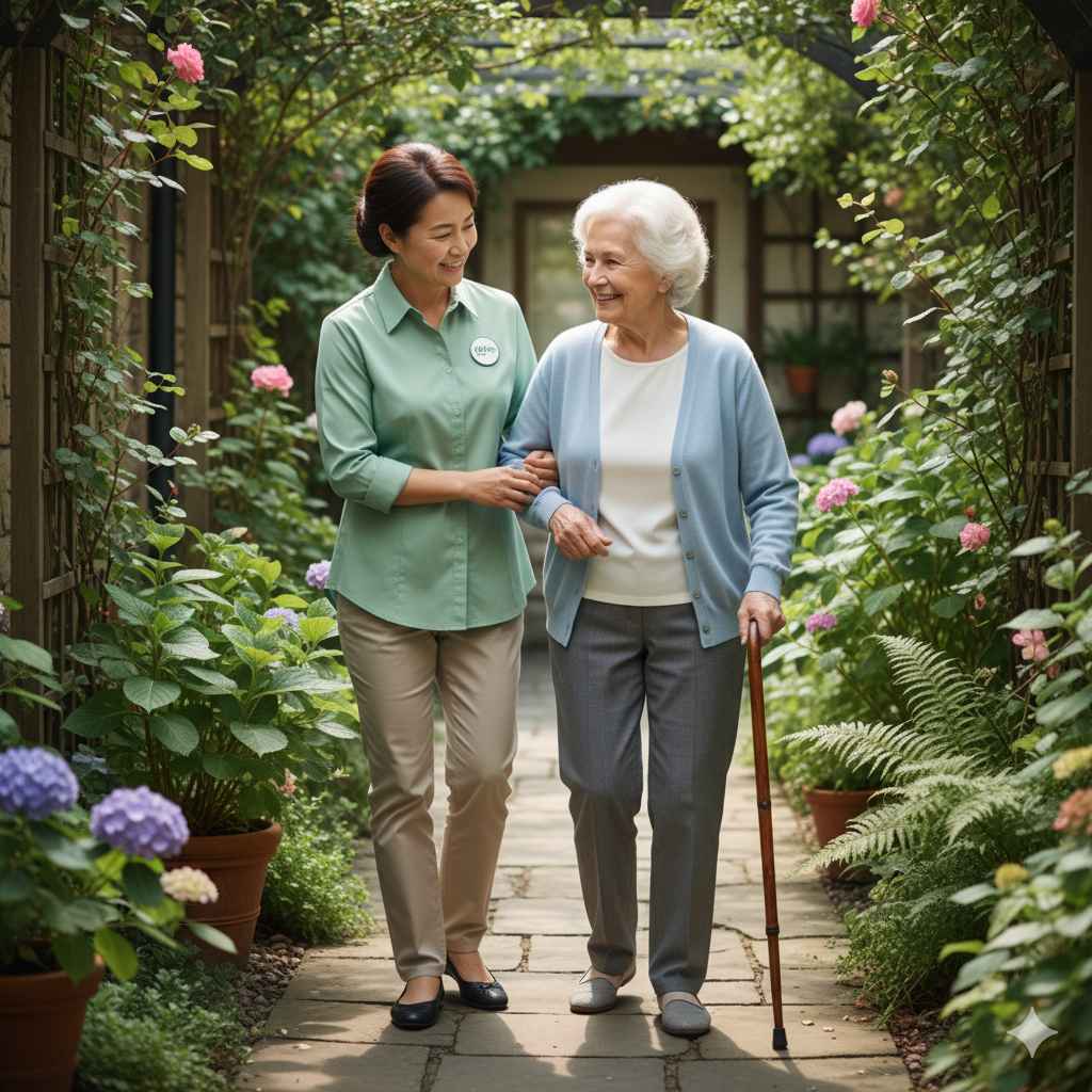 - ✅ Hỗ trợ đi lại, vận động nhẹ nhàng: Dìu đi dạo trong nhà hoặc ngoài sân, tập vật lý trị liệu nếu cần thiết.