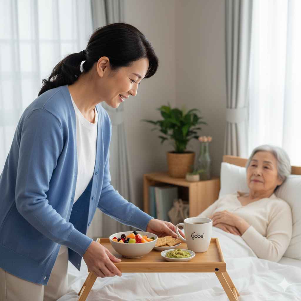 - Hỗ trợ ăn uống theo chế độ dinh dưỡng đã được bác sĩ chỉ định (mua đồ ăn, nấu cháo, bón ăn...).